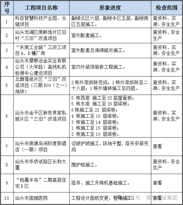 按照集团公司定期检查部署,公司于12月24日(星期三)开始对在建项目进行2025年第四季度质安大检查以及年终大检查,检查共2天。本次检查,各在建工地的项目负责人重视,相关人员在工地配合检查,现将检查情况总结如下: